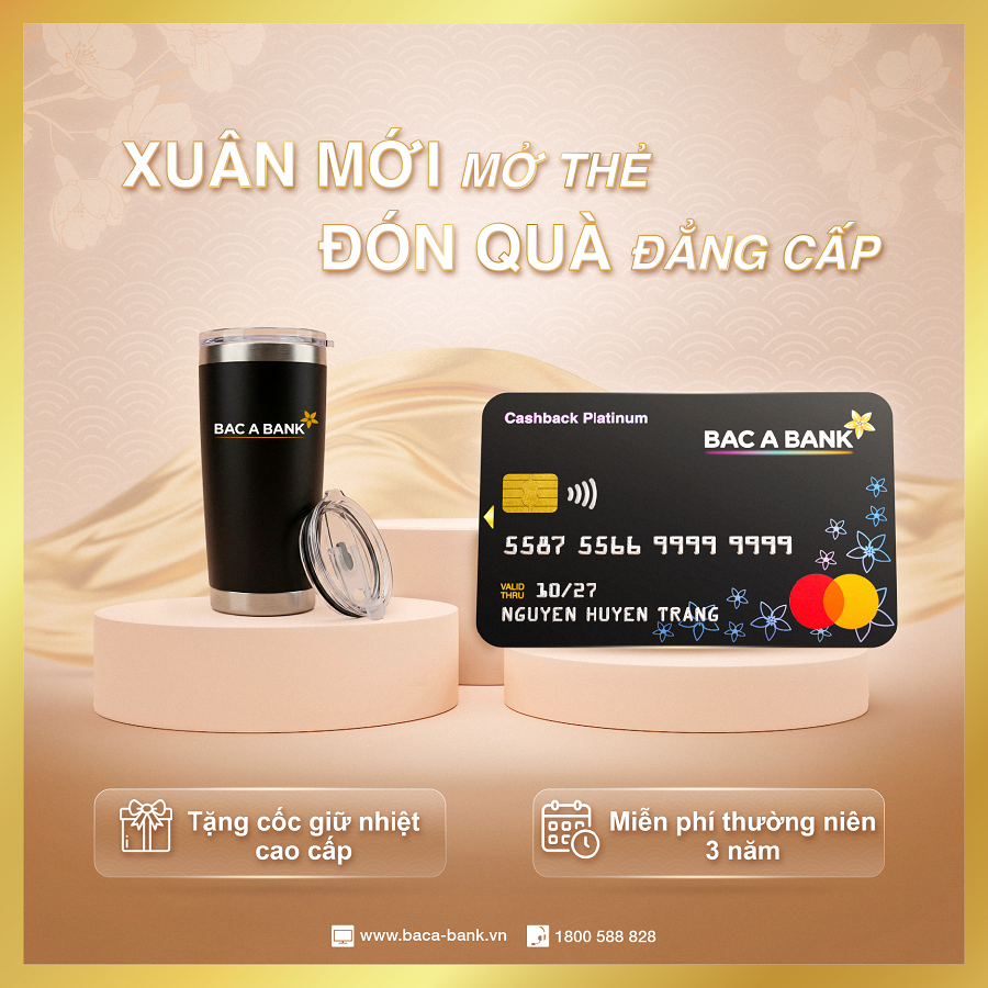 Nắm bắt nhu cầu gia tăng mua sắm dịp đầu năm, từ nay đến hết ngày 31/03/2026, ngân hàng TMCP Bắc Á (BAC A BANK) chính thức triển khai chương trình “Xuân mới mở thẻ - Đón quà đẳng cấp”, mang đến nhiều quyền lợi thiết thực, hấp dẫn cho khách hàng mở mới thẻ tín dụng quốc tế BAC A BANK MasterCard.