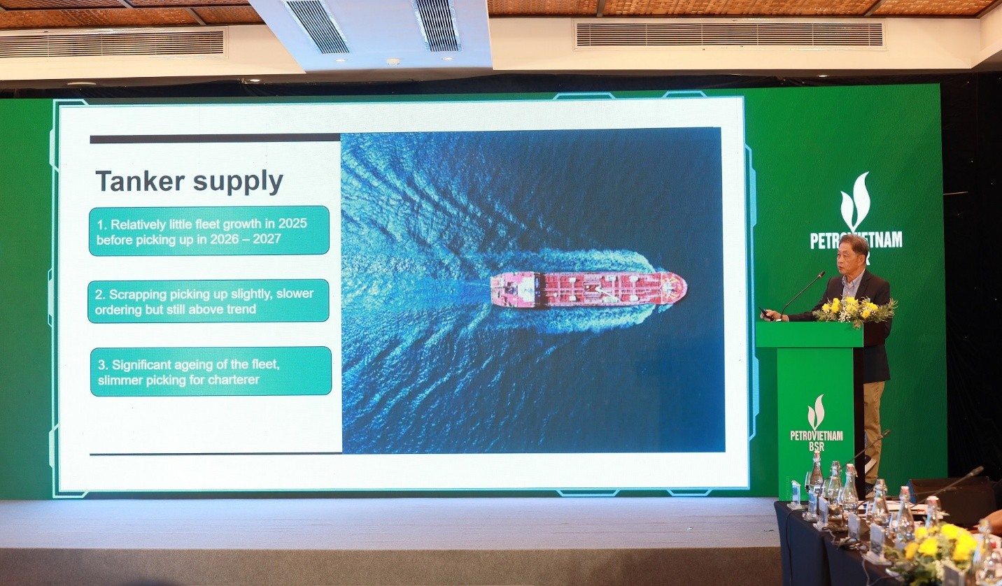 Trong khi đó, đại diện VIETSEA phân tích sâu về tình hình thị trường vận chuyển dầu thô, đặc biệt là sự dịch chuyển của dòng tàu từ các tuyến qua kênh đào Suez sang tuyến quanh Mũi Hảo Vọng (Nam Phi) - kéo dài hành trình thêm trung bình từ 7 - 10 ngày và làm tăng chi phí lên đến 34%. VIETSEA cũng đưa ra một số nhận định về thị trường tàu vận chuyển trong thời gian đến.