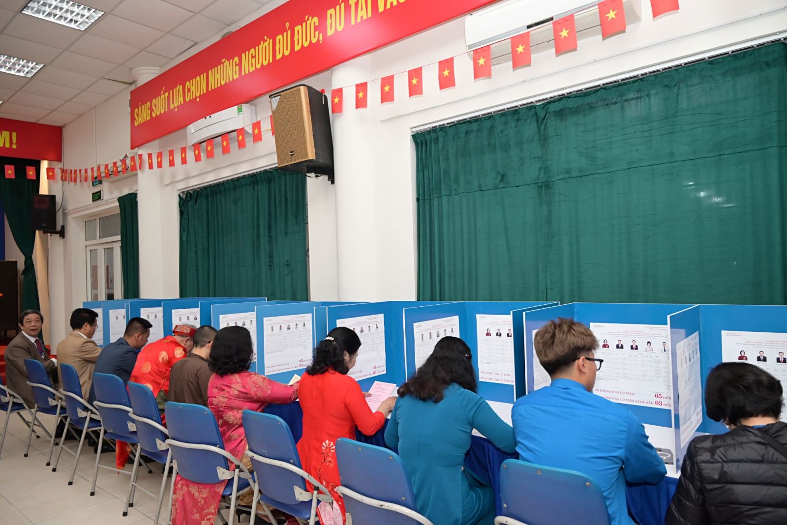 Tại mỗi bàn viết phiếu bầu, cử tri dễ dàng xem lại danh sách và thông tin về các ứng cử viên để tự mình lựa chọn và ghi phiếu bầu. Việc viết phiếu được thực hiện kín, bảo đảm nguyên tắc bỏ phiếu kín theo quy định của pháp luật.