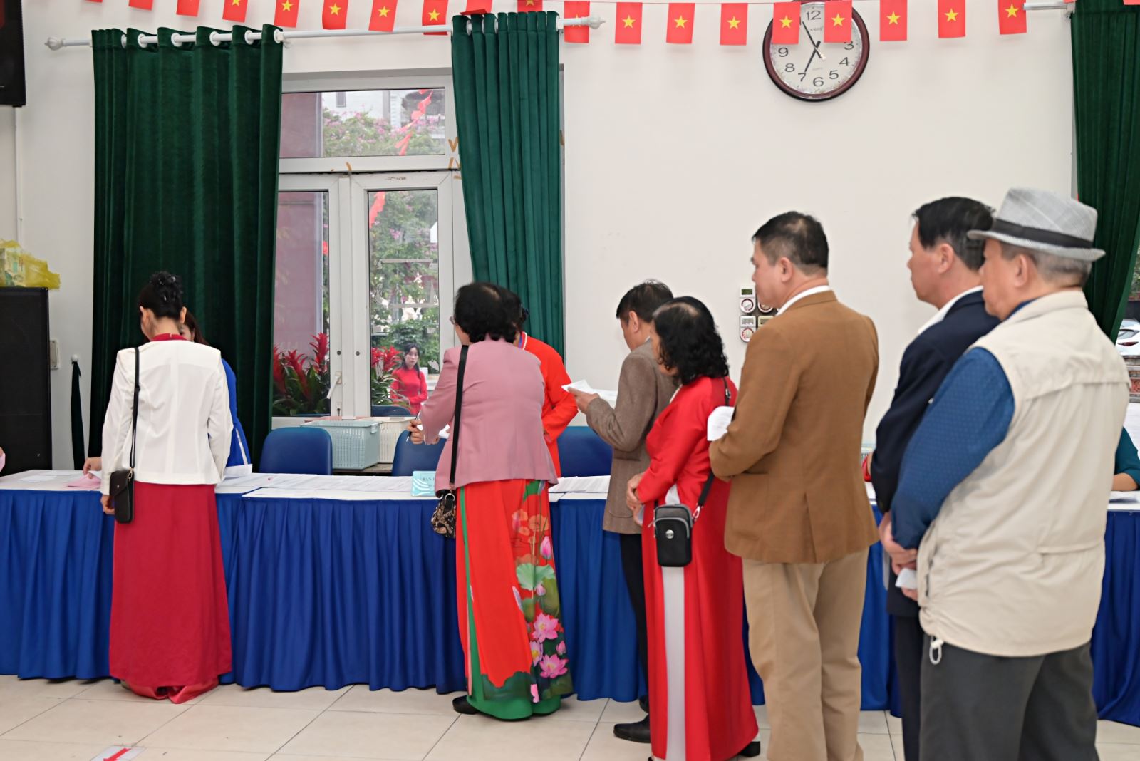 Mỗi khu vực bỏ phiếu điều có ban lễ tân đón tiếp, hướng dẫn cử tri