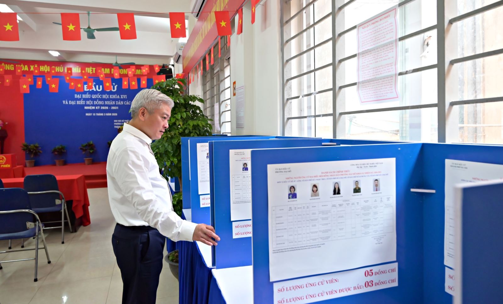 Để tạo điều kiện thuận lợi cho cử tri, đặc biệt là người cao tuổi, người có bệnh lý hoặc khó khăn trong việc đi lại, Ủy ban Bầu cử phường đã bố trí hòm phiếu phụ nhằm bảo đảm mọi cử tri đều có thể thực hiện quyền và nghĩa vụ công dân của mình. Cơ sở vật chất tại các khu vực bỏ phiếu được chuẩn bị đầy đủ, bao gồm hệ thống camera an ninh, máy tính, máy in, máy scan chuyên dụng và hạ tầng internet phục vụ kết nối với hệ thống bầu cử theo hướng dẫn của Thành phố.