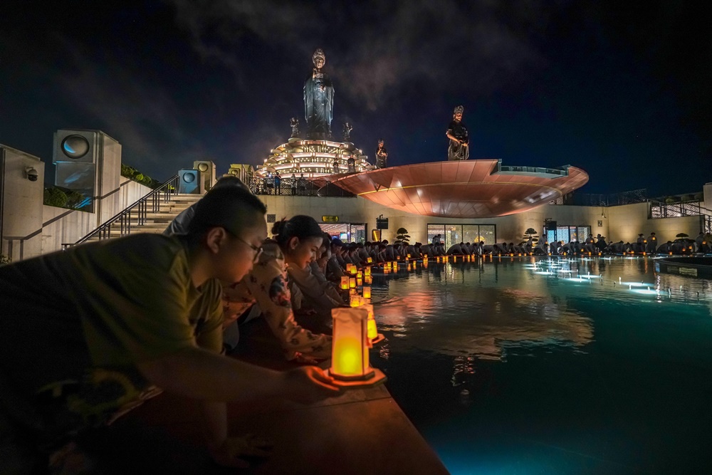 Núi Bà Đen trong đêm thả hoa đăng dịp Trung thu. Ảnh: Nguyễn Minh Tú
