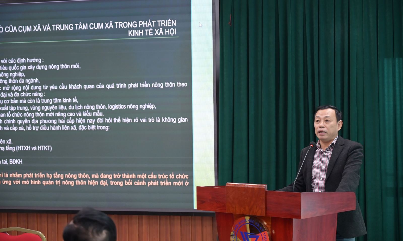 Phát biểu khai mạc hội thảo, PGS.TS Phạm Quang Thao, Phó Chủ tịch VUSTA nhấn mạnh, xây dựng cụm trung tâm nông thôn mới đang trở thành yêu cầu cấp thiết trong bối cảnh nông thôn Việt Nam đối mặt nhiều thách thức mới. Quá trình đô thị hóa diễn ra mạnh mẽ, biến đổi khí hậu ngày càng khốc liệt, chuyển dịch lao động, dân cư diễn ra nhanh, trong khi hạ tầng xã hội, dịch vụ công và liên kết sản xuất ở nhiều địa phương chưa theo kịp. Do đó, mô hình nông thôn mới không thể dừng lại ở tiêu chí xây dựng đơn lẻ từng xã mà cần tiếp cận theo cụm, liên hoàn, có tính kết nối vùng để nâng cao hiệu quả đầu tư, tối ưu hóa nguồn lực và tạo động lực phát triển bền vững.