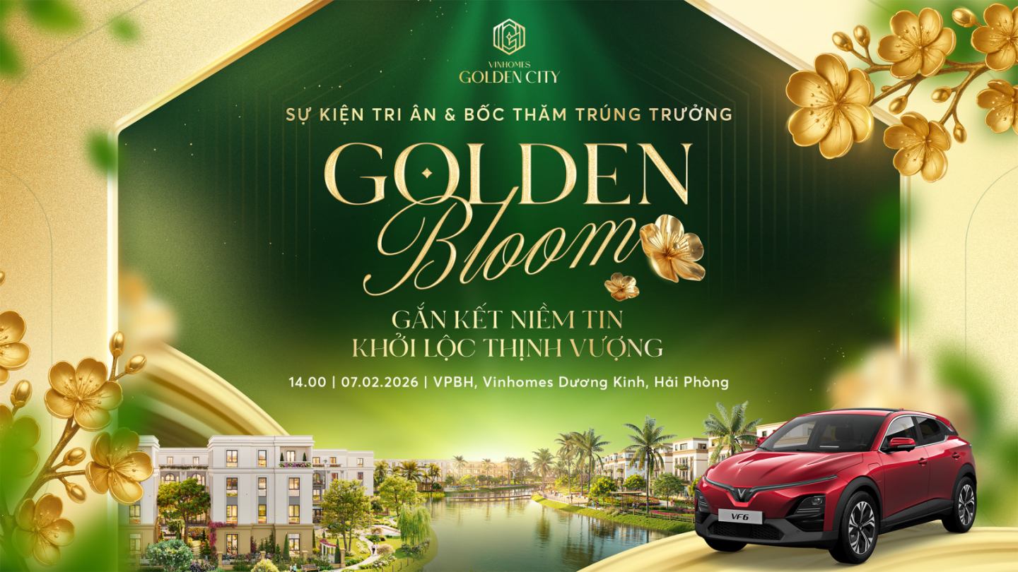 Đặc biệt, vào lúc 14h ngày 07/02 tới đây, tại văn phòng bán hàng Vinhomes Golden City tại Dương Kinh, Hải Phòng còn diễn ra sự kiện tri ân và bốc thăm trúng thưởng “Golden Bloom” – Gắn kết niềm tin, khởi lộc thịnh vượng, mang đến loạt ưu đãi chồng ưu đãi cho khách hàng.