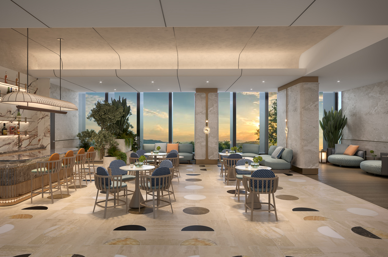 Nhờ lợi thế địa hình “lưng tựa núi, mặt hướng biển”, tòa tháp mở ra tầm nhìn 360 độ ôm trọn vịnh di sản, nơi những dãy núi đá vôi kỳ vĩ vươn mình khỏi làn nước xanh ngọc của vịnh Lan Hạ. Từ ban công căn hộ, chủ nhân có thể thu trọn vào tầm mắt bình minh ló rạng trên mặt biển, hoàng hôn buông xuống sau những hòn đảo đá vôi, hay những cánh buồm du thuyền chậm rãi lướt trên mặt biển.