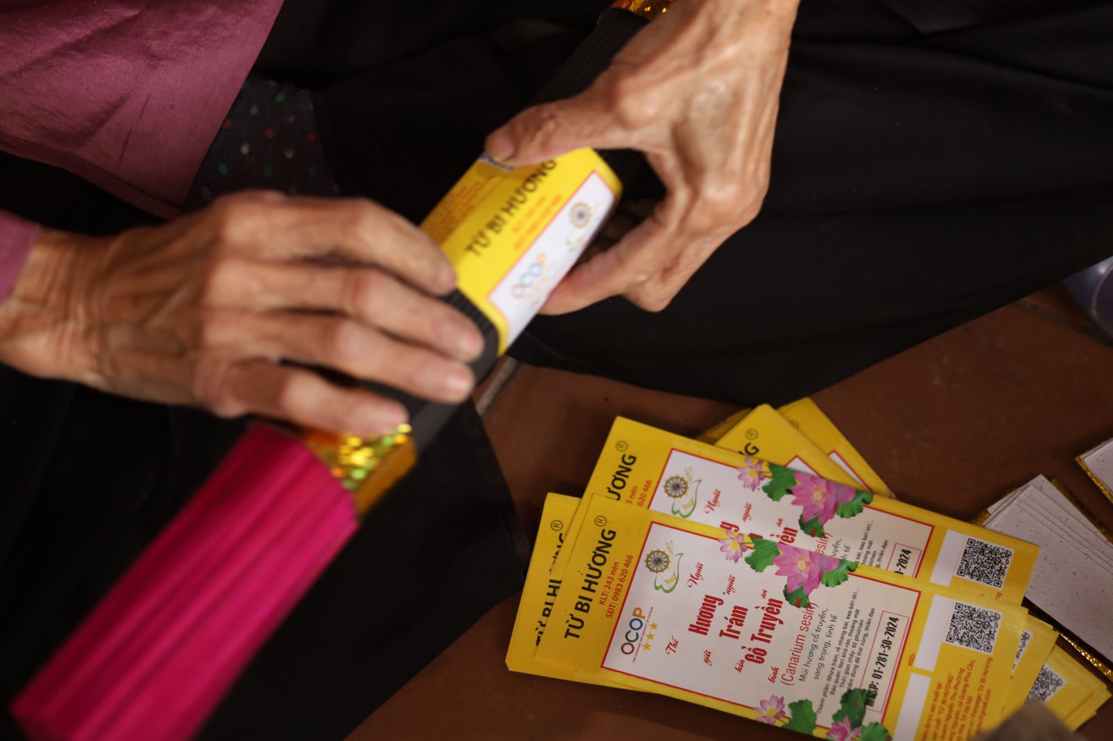 Không chạy theo sự khác biệt hình thức, các sản phẩm của Từ Bi Hương tập trung vào chất lượng cốt lõi. “Hương được làm hoàn toàn từ nguyên liệu tự nhiên như thân cây, lá cây, rễ, vỏ và gỗ. Quan trọng nhất là cái tâm của người làm nghề được đặt vào từng nén hương”, chị Phương chia sẻ. Chứng nhận OCOP đã giúp những giá trị ấy được “nhìn thấy” rõ ràng hơn trên thị trường.