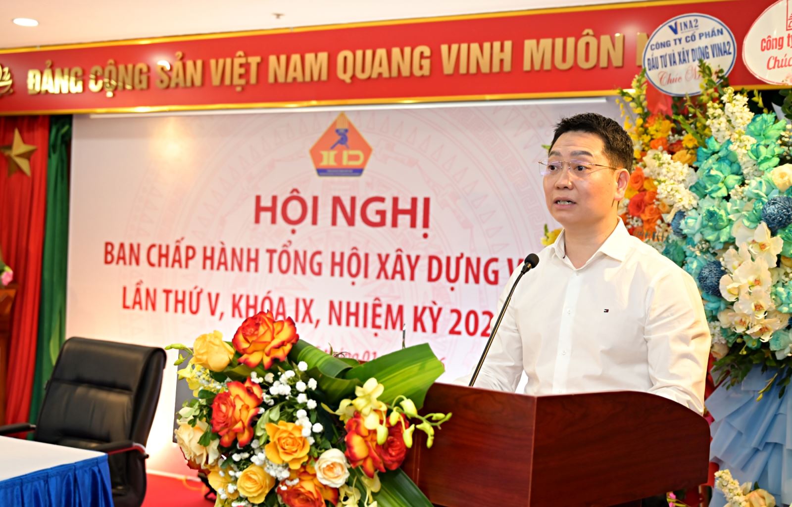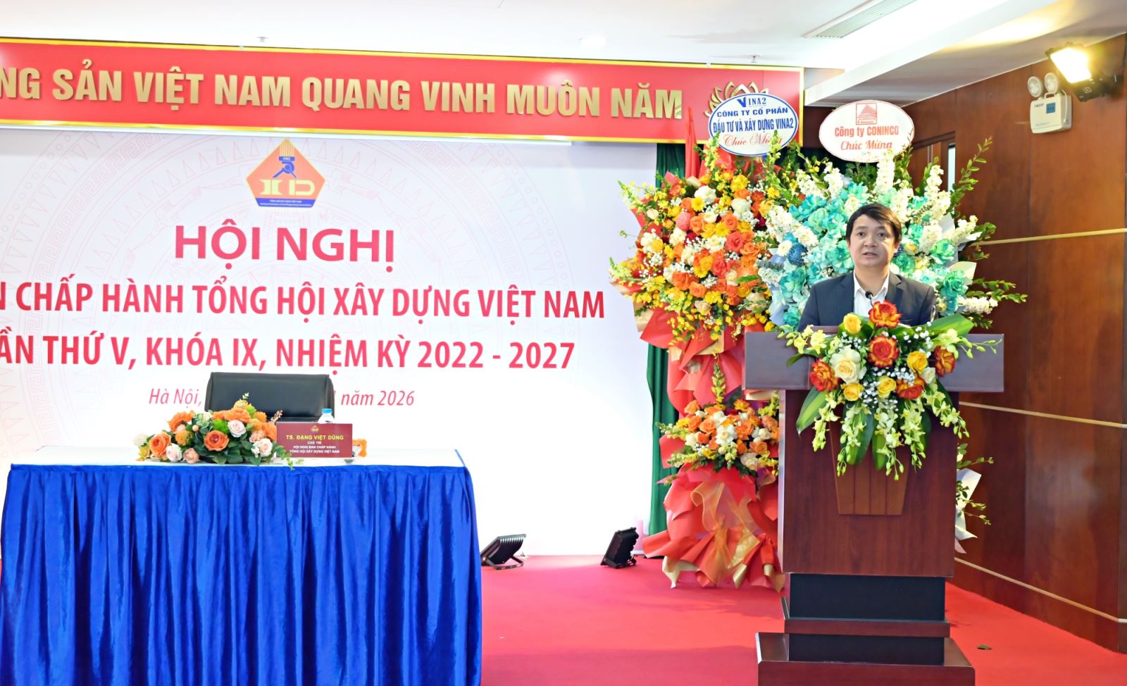 Công ty Cổ phần Đầu tư và Xây dựng VINA2 tặng hoa chúc mừng Hội nghị
