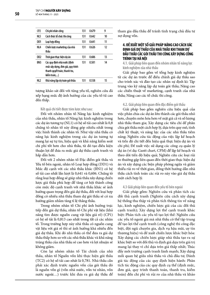 Research on factors affecting bidding prices of contractors when participating in bidding for construction packages in Hanoi