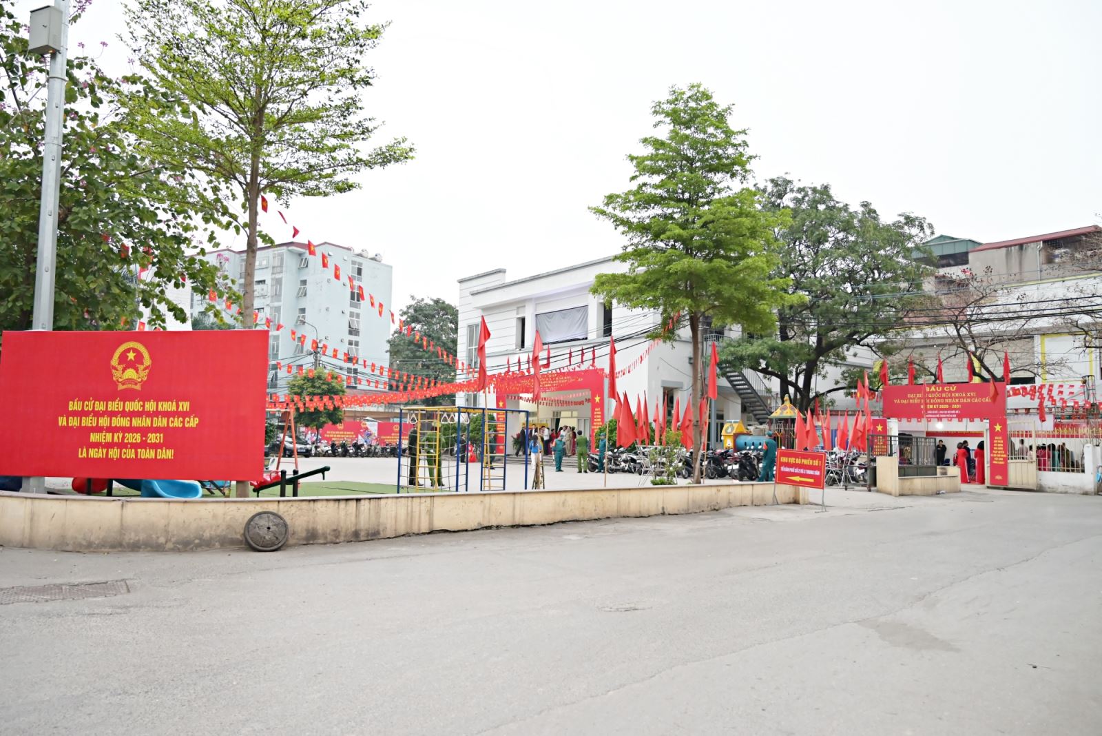 Khu vực bỏ phiếu số 1 và khu vực bỏ phiếu số 3 phường Đại Mỗ ngay gần nhà thờ giáo xứ Phùng Khoang