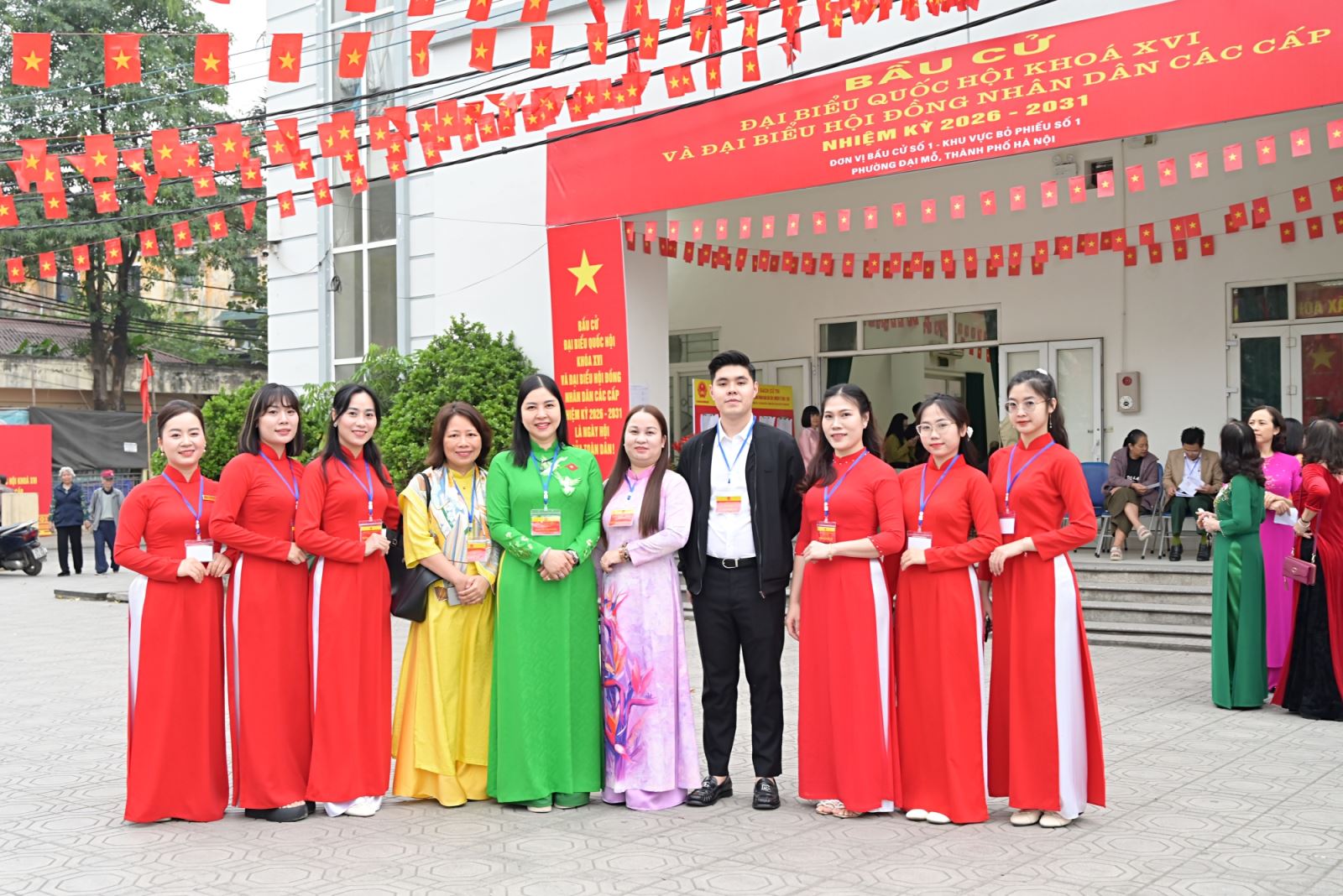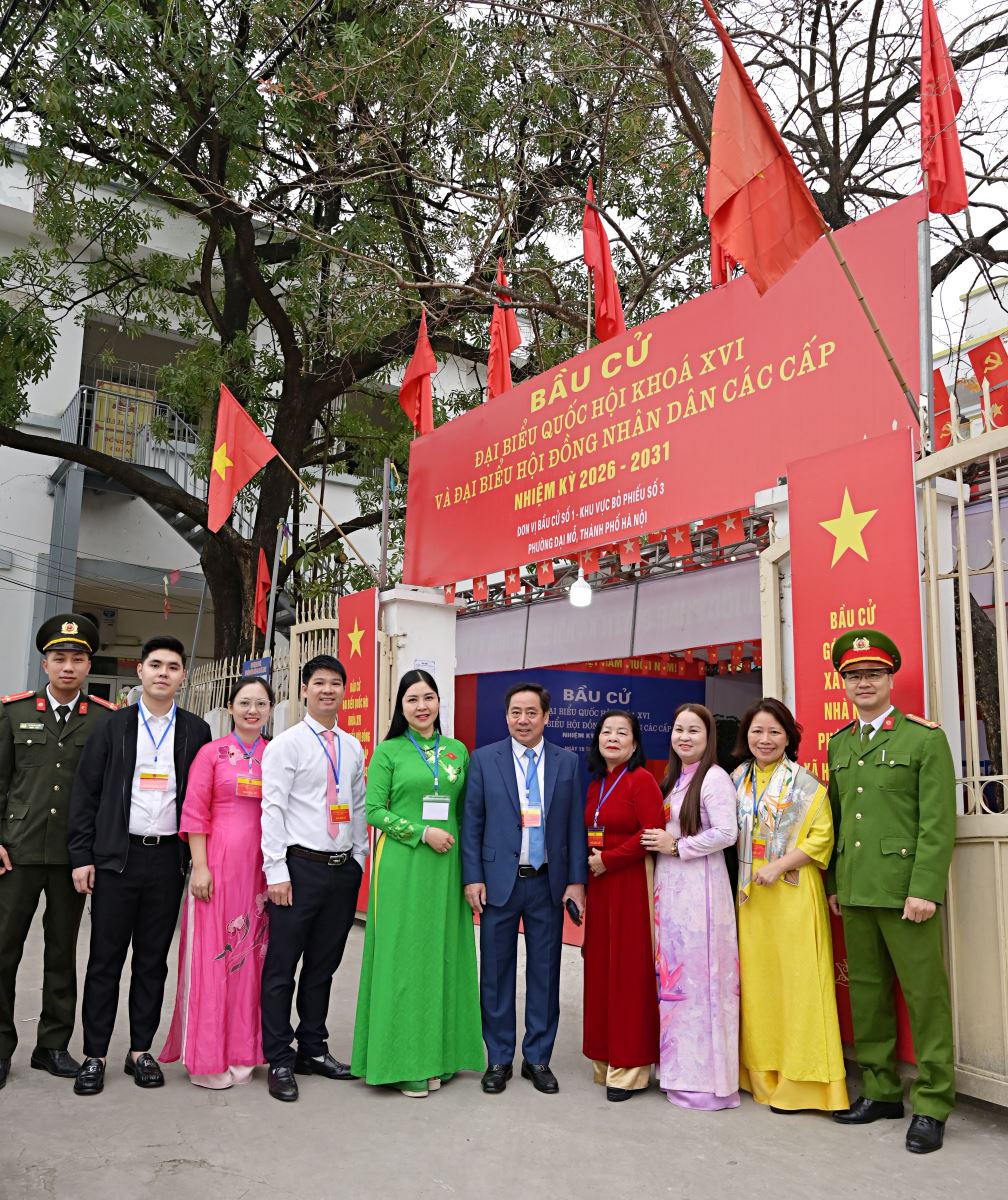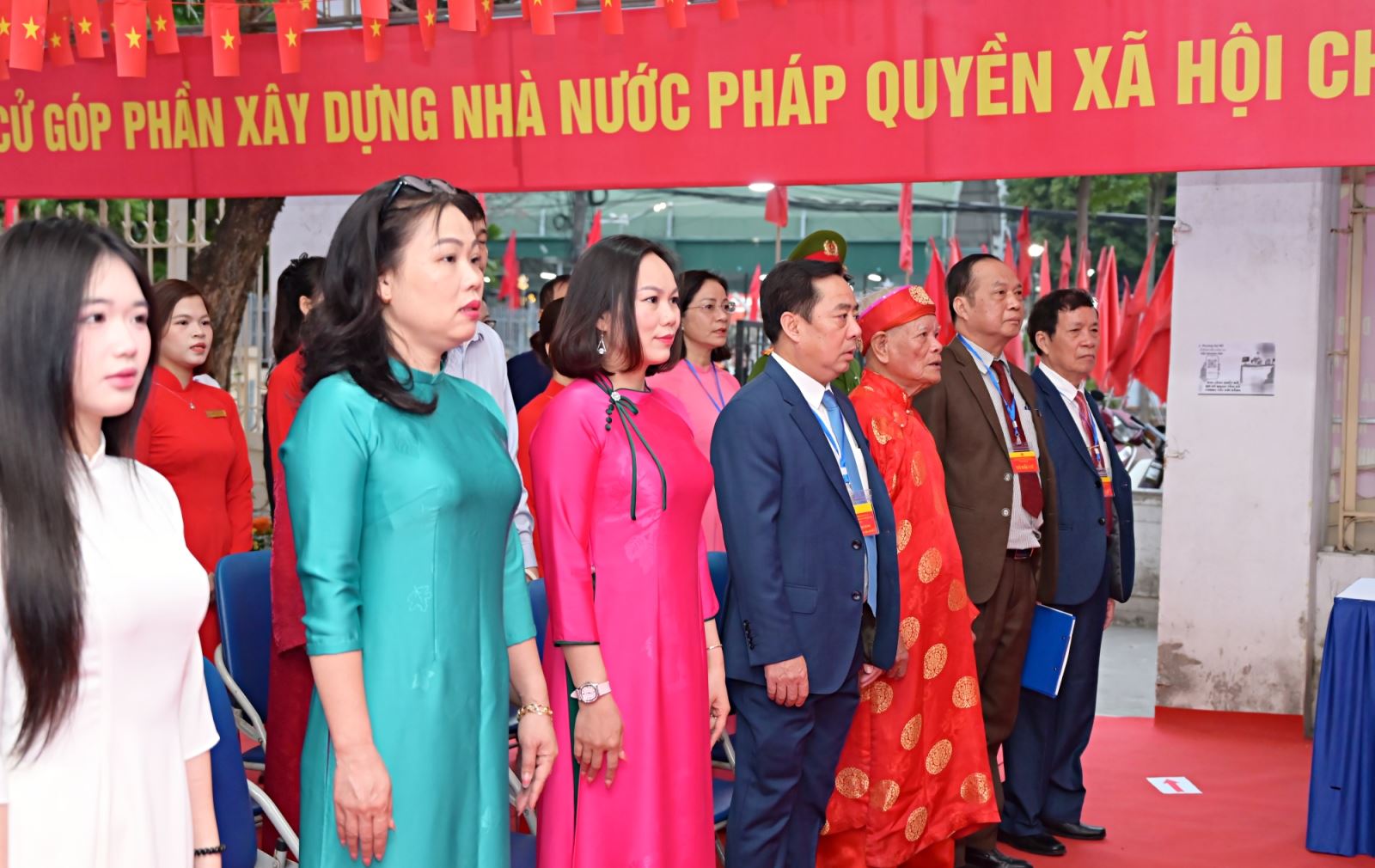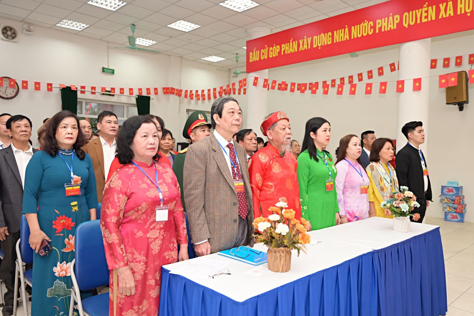 Ông Nguyễn Chí Dũng – Phó Chủ tịch UBND phường Đại Mỗ (đứng thứ 4 từ trái sang phải) tham dự lễ khai mạc bầu cử tại khu vực bỏ phiếu số 3