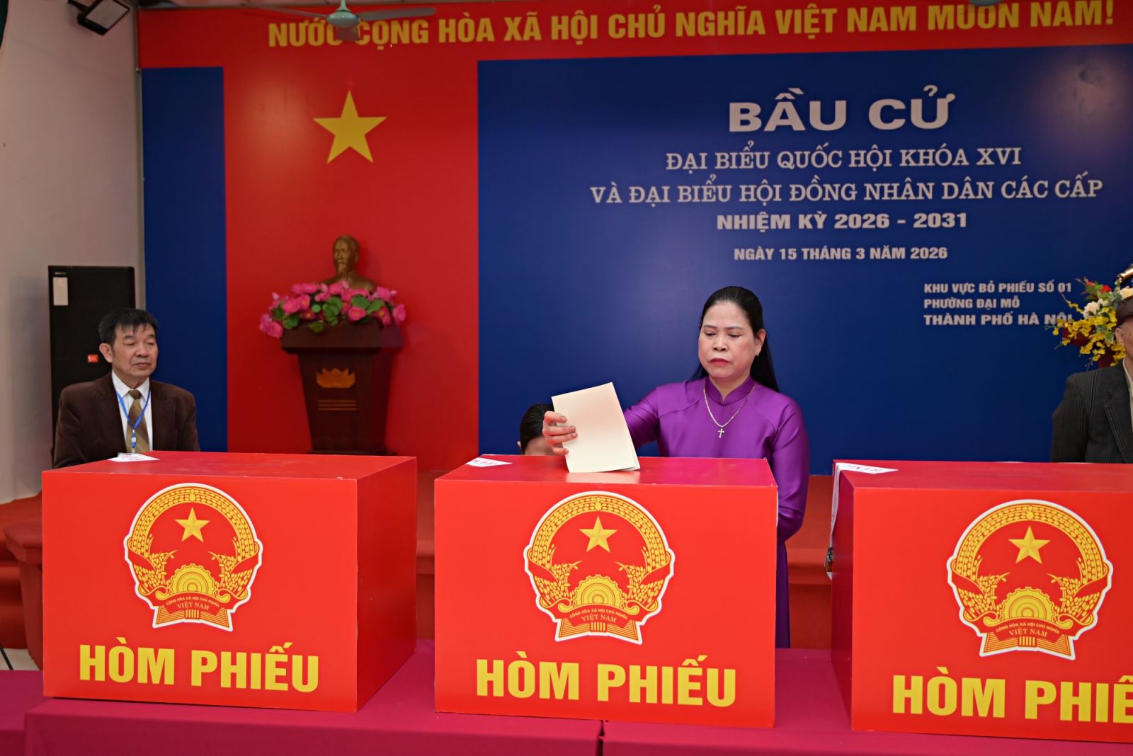 Sáng 15/3/2026, đông đảo đồng bào Công giáo thuộc Giáo xứ Phùng Khoang phường Đại Mỗ (Hà Nội) đã hân hoan cầm lá phiếu đi bầu cử Đại biểu Quốc hội khóa XVI và Đại biểu Hội đồng nhân dân các cấp, nhiệm kỳ 2026 - 2031.