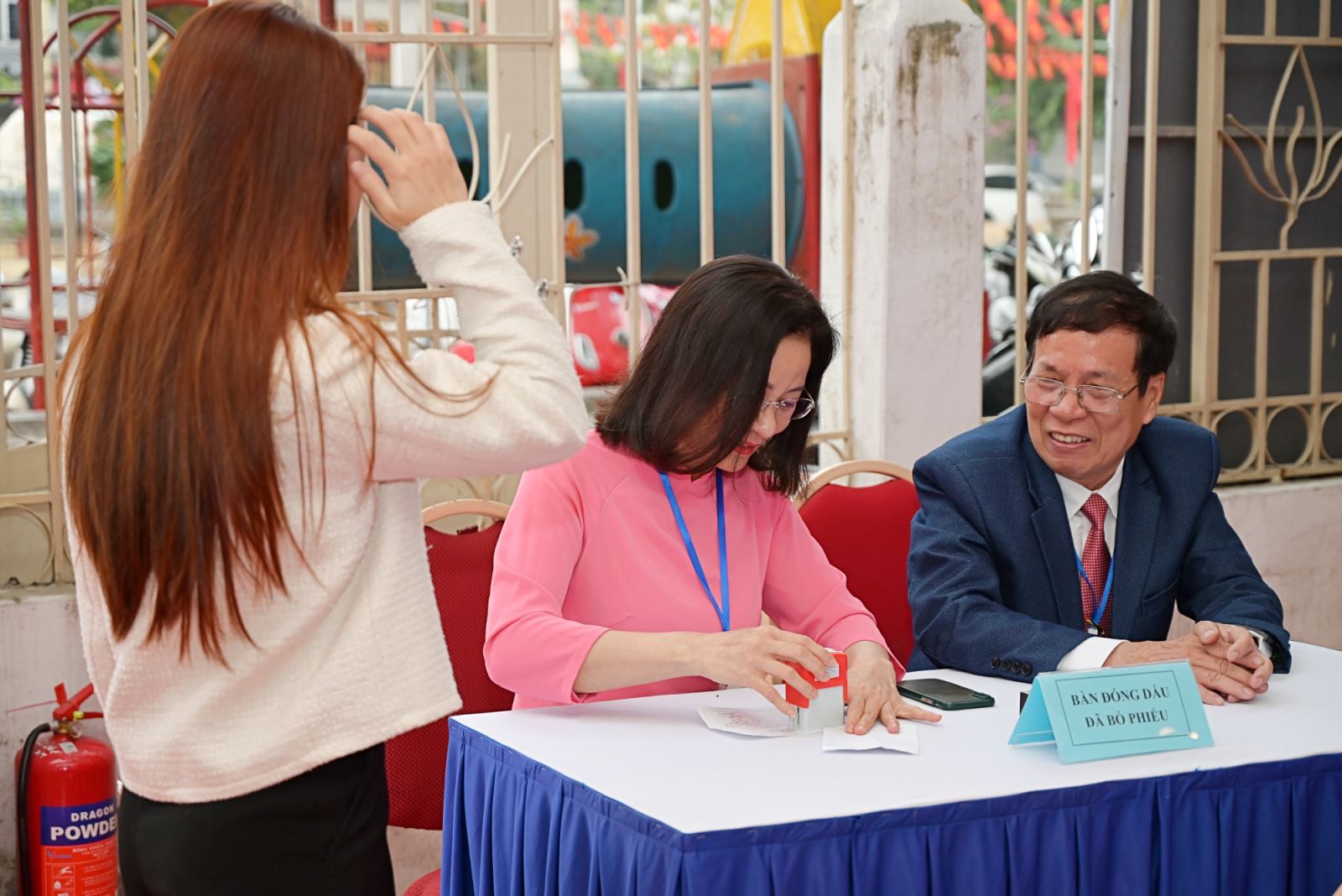 Tổ bầu cử xác nhận việc bỏ phiếu và đóng dấu “đã bỏ phiếu” vào thẻ cử tri