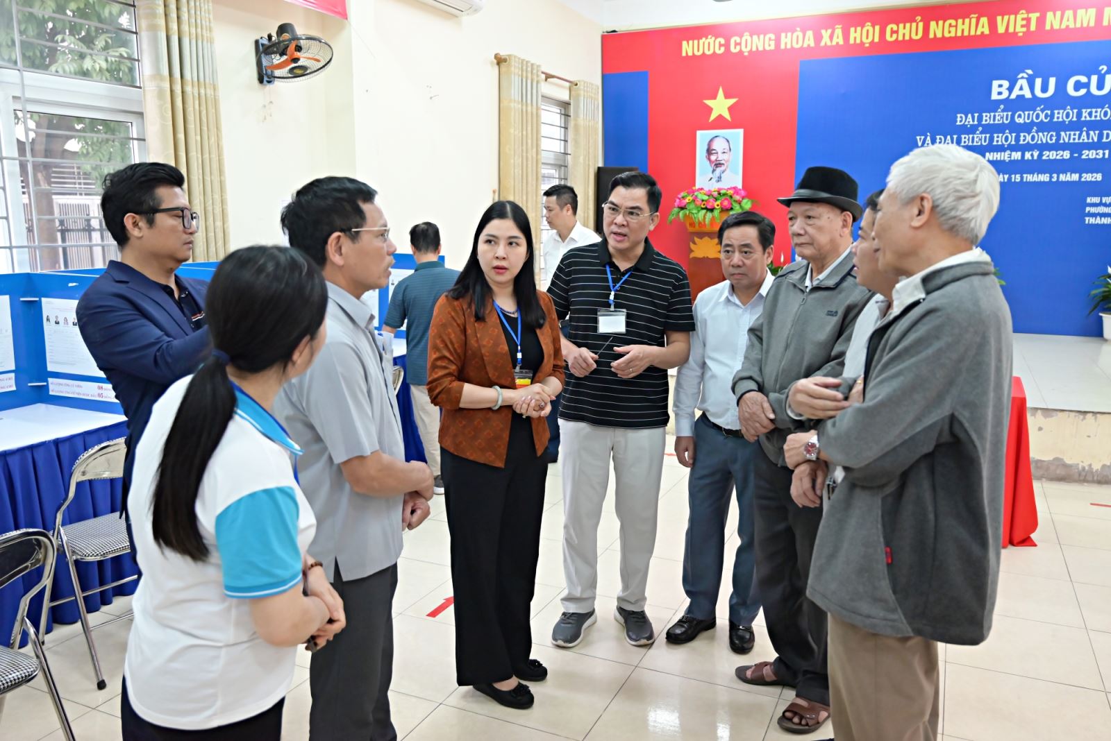 Để tạo điều kiện thuận lợi cho cử tri, đặc biệt là người cao tuổi, người có bệnh lý hoặc khó khăn trong việc đi lại, Ủy ban Bầu cử phường đã bố trí hòm phiếu phụ nhằm bảo đảm mọi cử tri đều có thể thực hiện quyền và nghĩa vụ công dân của mình. Cơ sở vật chất tại các khu vực bỏ phiếu được chuẩn bị đầy đủ, bao gồm hệ thống camera an ninh, máy tính, máy in, máy scan chuyên dụng và hạ tầng internet phục vụ kết nối với hệ thống bầu cử theo hướng dẫn của Thành phố.