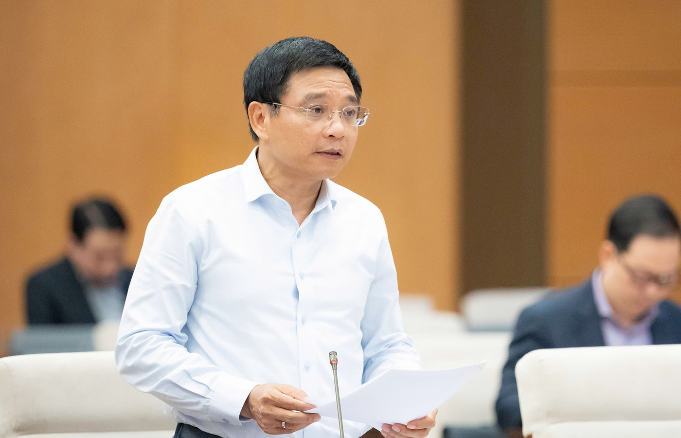 Bộ trưởng Bộ Tài chính Nguyễn Văn Thắng phát biểu tại phiên họp. Ảnh: quochoi.vn.