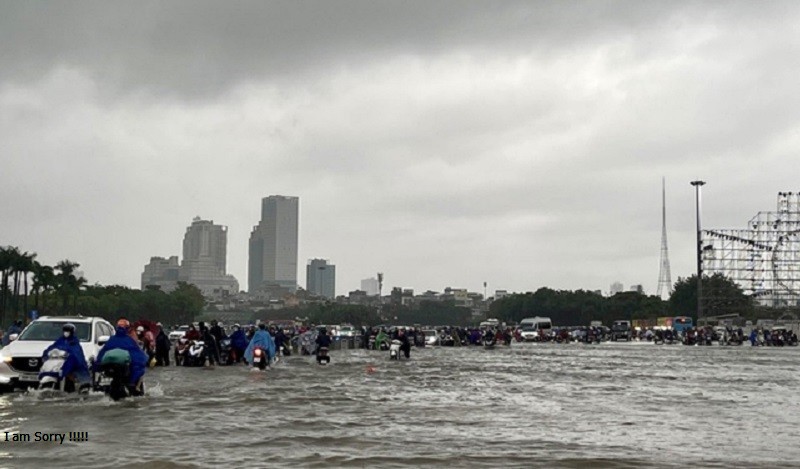 Nhiều tuyến đường TP Hà Nội ngập lụt trong cơn bão số 11.