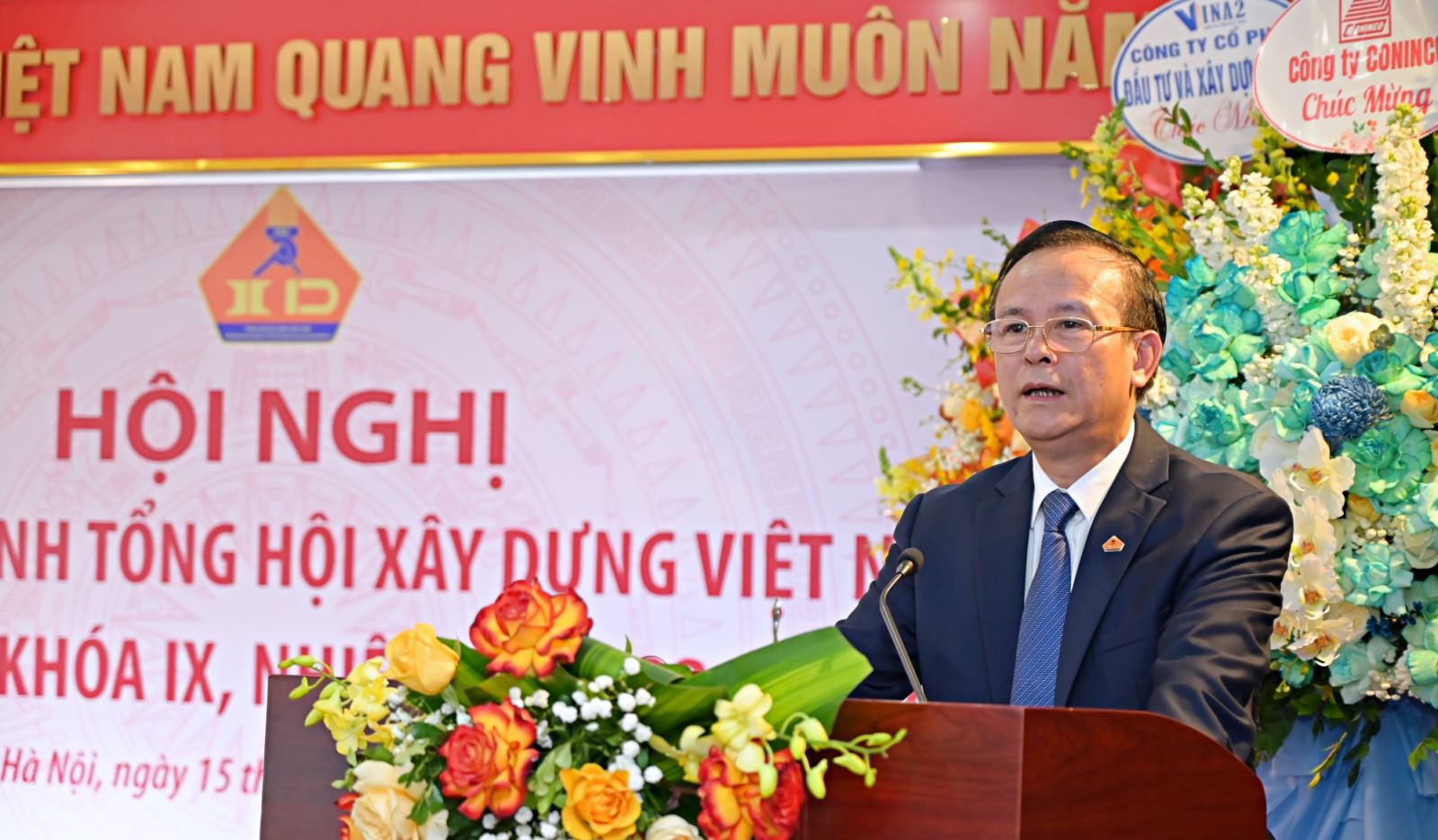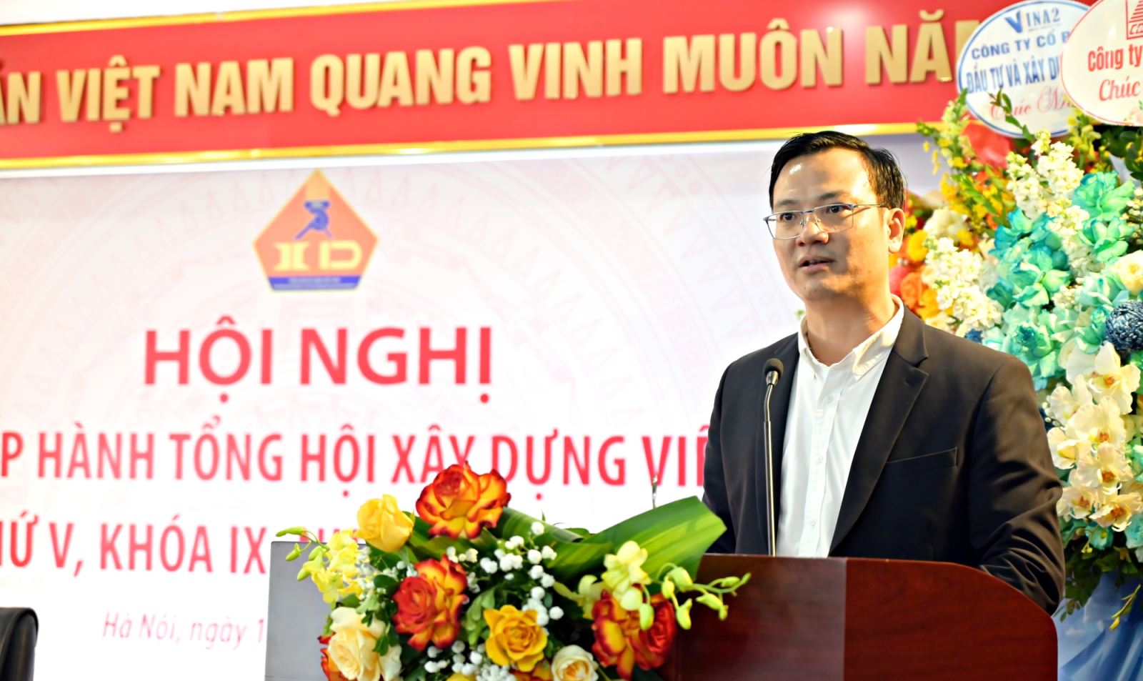 Công ty Cổ phần Đầu tư và Xây dựng VINA2 tặng hoa chúc mừng Hội nghị